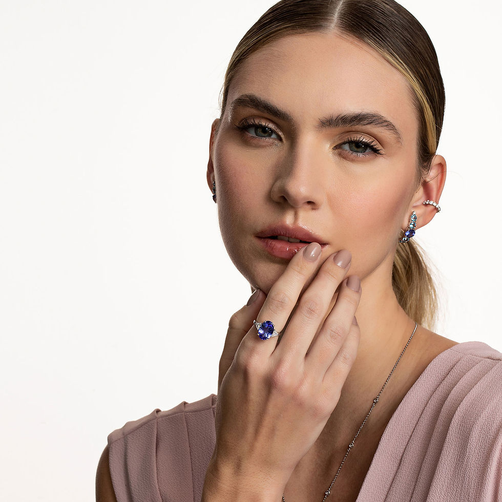 Anel tanzanita e trilhons de diamantes em ouro branco 18k